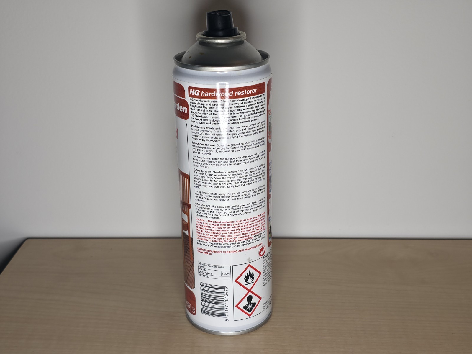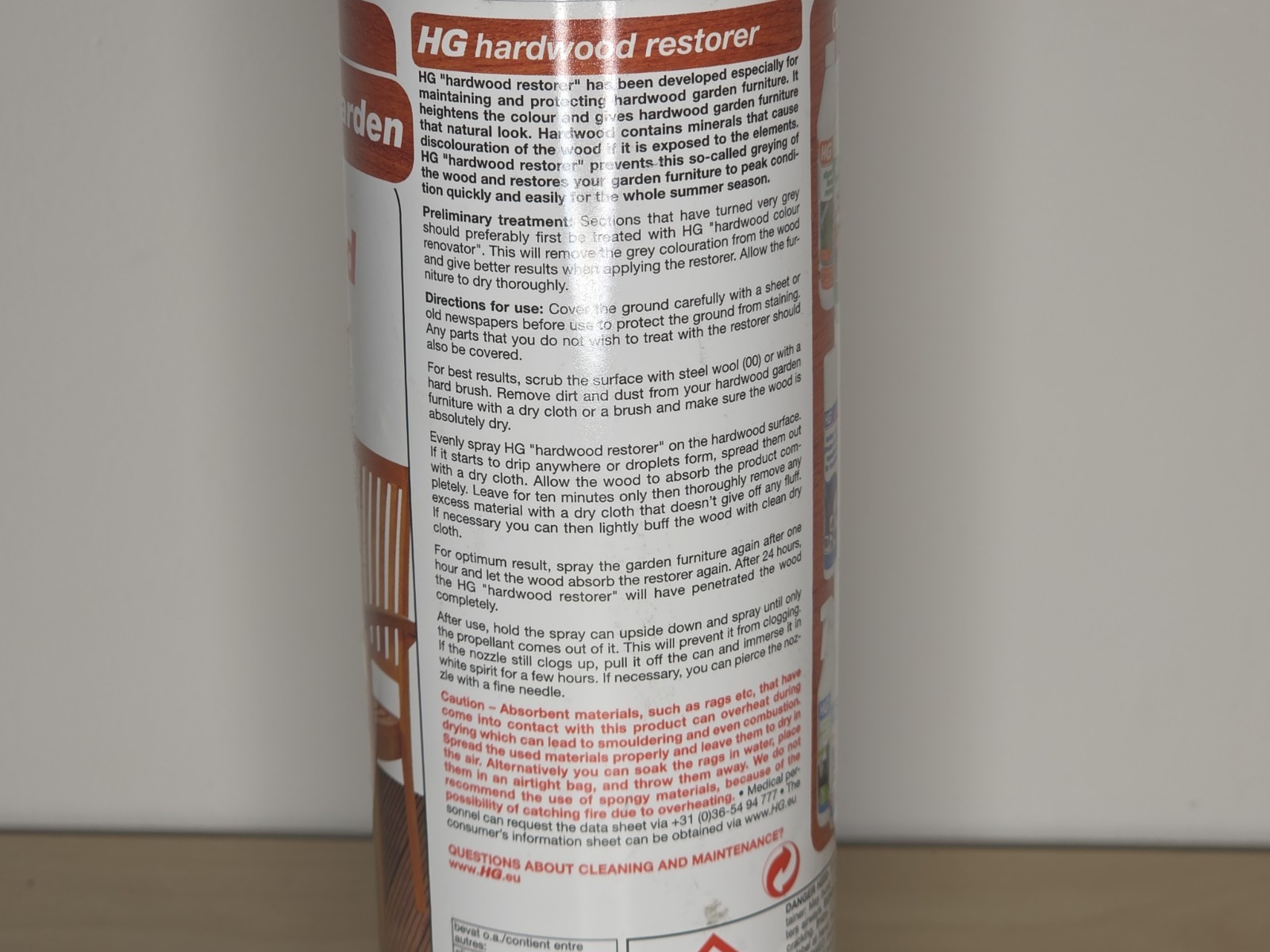 The HG Hardwood Restorer in a natural color is a 500ml spray specifically designed for furniture made from wood. It is easy and quick to use, making it ideal for both indoor and outdoor applications. This product from the UK brand HG is perfect for restoring and revitalizing the natural beauty of wooden furniture, without leaving any harmful chemicals or unpleasant scents behind. Ideal for anyone looking to enhance the beauty of their wooden furniture pieces with a simple and effective solution.
