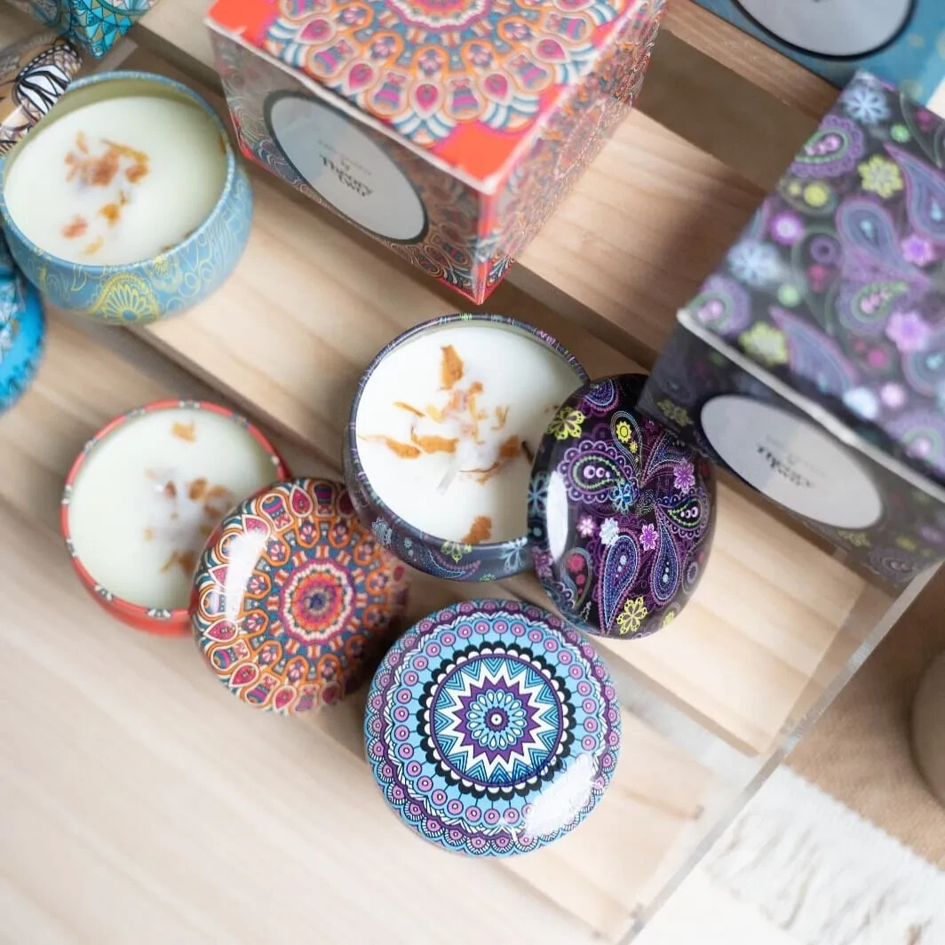 Crafted from premium soy wax, this delightful candle collection is designed to lift your spirits and soothe your mind. Housed in charming tin containers with an array of elegant colors, they make perfect gifts for special occasions such as holidays and birthdays, spreading warmth to friends, family, and colleagues alike. After the candle has burned, the tin can be repurposed as a stylish storage container for small items, blending beauty with sustainability.