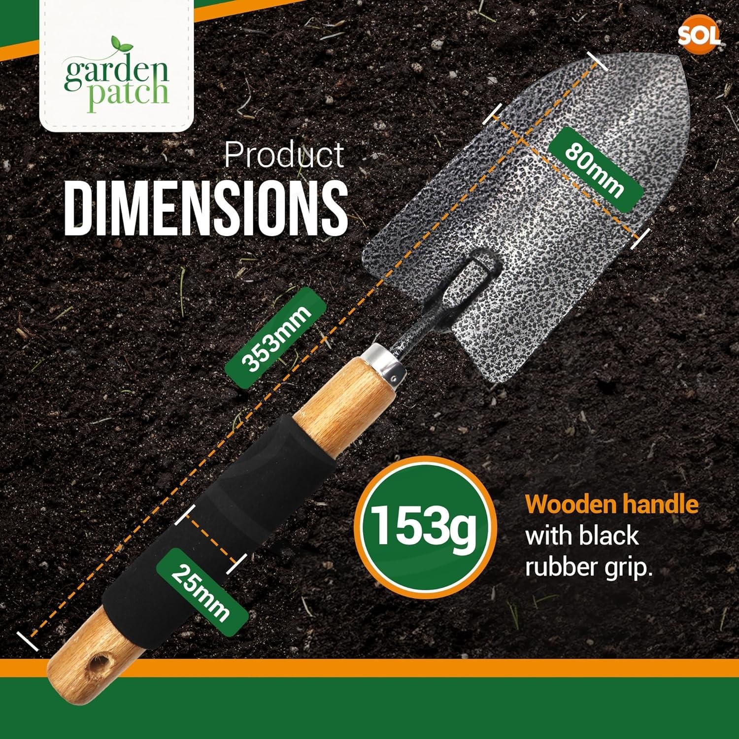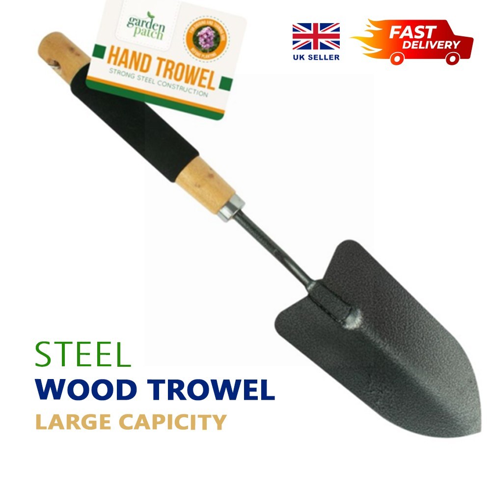 The superb quality Garden Patch Heavy Duty Garden Trowel is a durable steel hand shovel designed for planting in the garden. With a stainless steel blade measuring 16cm in length and 11.5cm in width, this trowel is sturdy and perfect for digging through the soil. The ergonomic grip handle, measuring 18cm, ensures a comfortable and secure grip while working in the garden. This black trowel from the brand Garden Patch is easy to clean and a reliable tool for any gardening enthusiast in the United Kingdom.
